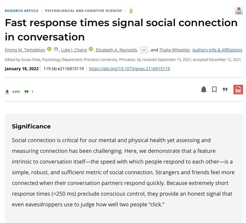 For me, learning take-and-take suggested a solution not just to songs about Spiderman, but to a scientific mystery. I was in graduate school at the time, running studies aimed at answering the question, “Do conversations end when people want them to?”