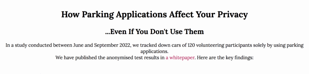 Uncategorized Europe – Opt Out of Auto License Plate Tracking by Parking Apps. by adminSeptember 27, 2022 Using the powers of the GDPR in Europe you can have apps not track your car ( a severe privacy risk) https://notmyplate.com/